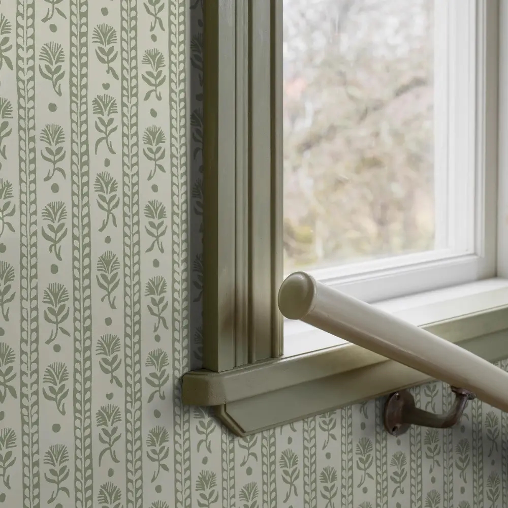 Nejlikerand er et lyst og rustikt tapet fra 1700-tallets mønstertradition, hvor striberne er dekoreret med små blade og stiliserede nelliker. Mønsteret stammer fra en udskåret trykrulle i træ og repræsenterer den slags enkle, dekorative striber, der var populære på både tekstiler og tapeter i perioden.