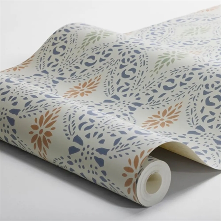 Kvarnholmen er et dekorativt tapet med rødder i 1800-tallets almuemaleri. Mønsteret er inspireret af et stencilmaleri fra Kalmar Läns museums samlinger og består af rytmiske, abstrakte former, som var karakteristiske for tidens håndmalede vægdekorationer. Navnet henviser til bydelen Kvarnholmen i det centrale Kalmar, hvor motivet blev fundet.