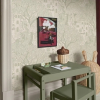 Her er Kingdom of the Willow limtrykt i en varm, frisk grøn nuance på en æggeskalshvid baggrund. Et lyst og harmonisk tapet, der skaber en rolig og tryg stemning på børneværelset.