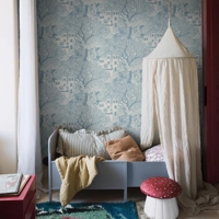 Kingdom of the Willow er et magisk børnetapet fyldt med fine detaljer. Det håndtegnede mønster inviterer til at gå på opdagelse i en eventyrlig verden med drager, prinsesser og riddere – og giver rummet et legende, men roligt udtryk.