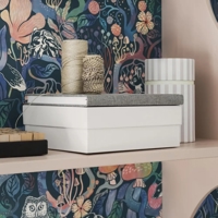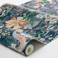 Velkommen til Magic Woods – en fortryllende skov fyldt med legesyge venner og små historier. Mellem svampe og blomster gemmer sig pindsvin, ræve og ugler, tegnet med et grafisk udtryk, der står i smuk kontrast til de akvarelmalede planter. Et fantasifuldt tapet, der inviterer til opdagelse og leg.