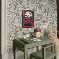 Underwater Magic er som et kig ned i en stille undervandsskov, hvor livet udfolder sig mellem tang og koraller. Søheste, skildpadder, hajer og blæksprutter svømmer side om side i et mønster fyldt med bevægelse og harmoni. Et roligt og drømmende tapet, der bringer havets magi ind på børneværelset.