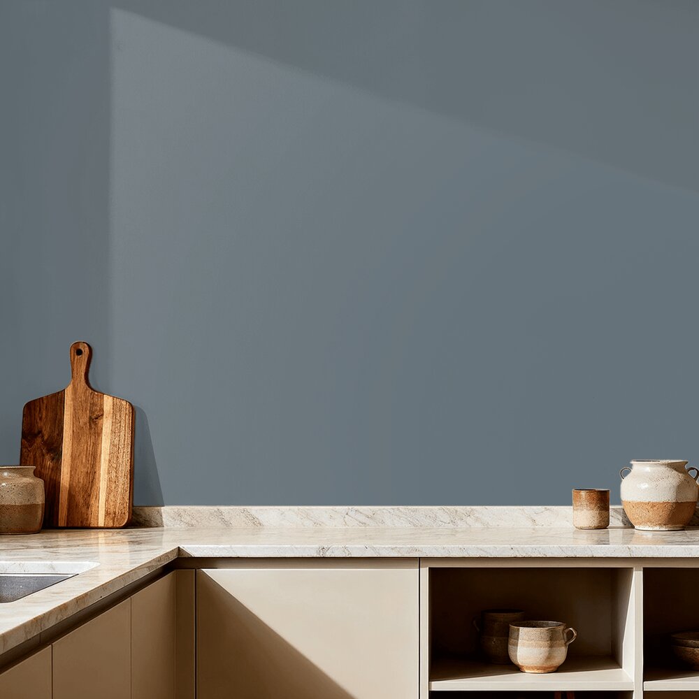Byge 4638 fra Jotun er en smuk og dyb blå nuance med et gråligt skær, som sammen med den helmatte glans fra vores DecoTREND Perfect Color efterlader en betagende overflade. Byge er en meget populær farve, som gør sig rigtig godt på større overflader - og endda til hele rum, hvor der ønskes en omfavnende og intim stemning.