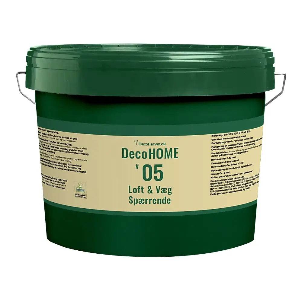 Denne spærrende isolermaling giver en mat, robust og vaskbar overflade, der både fungerer som primer og slutmaling. Den kan bruges på vægge og lofter indendørs, men også på trælofter og panelvægge, hvor gennemslag kan være et problem. Ønsker du senere en mere blank finish, kan DecoHOME Iso 5 uden problemer overmales med almindelig vægmaling.