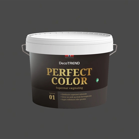 Vores smukkeste maling nogensinde er supermat, med et eksklusivt udseende. Perfect Colors bløde, supermatte finish giver en unik farveoplevelse. Den supermatte overflade, helt uden reflektion, fremhæver farverne på en helt speciel måde – og farven vil opleves både blødere og mere dæmpet.