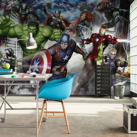 Avengers træder i aktion i dette kraftfulde fototapet med Hulk, Iron Man, Thor, Black Widow og flere af Marvels legendariske helte. Motivet summer af energi, sammenhold og styrke – perfekt til børneværelset eller filmrummet, hvor superkræfterne får frit spil.