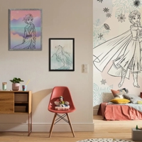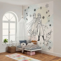 Elsa, Anna og Olaf bringer magien fra Arendelle ind i børneværelset med dette stemningsfulde fototapet. Snefnug og blade danser omkring dem og skaber et legende og varmt vinterunivers – perfekt til børn, der elsker Frost og det magiske venskab mellem karaktererne.