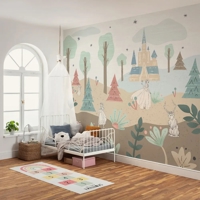 Dette smukke Frost-tapet viser Arendelle i bløde pastelfarver og skaber en magisk stemning, som vækker minder om Disneys elskede eventyr. Et drømmende motiv, der passer perfekt til børneværelset og giver plads til leg, fantasi og varme vintereventyr året rundt.
