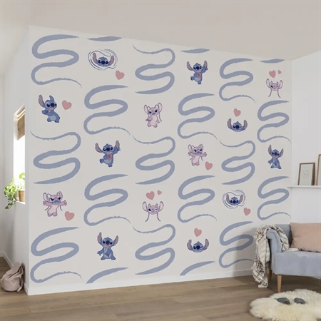 Stitch og Angel er forelskede og spreder glæde og charme i dette søde og farverige fototapet. De sarte farver og det kærlige motiv passer perfekt til børneværelset og skaber en rolig, positiv stemning med plads til både fantasi og følelser.