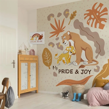 Et kærligt budskab og varme farver mødes i dette beroligende fototapet fra Løvernes Konge. Motivet er ideelt til baby- og børneværelser, hvor tryghed, nærvær og en blid atmosfære skal fylde rummet – med Simba og vennerne som rolige følgesvende.