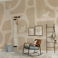 Et diskret og stilfuldt tapetdesign med bløde silhuetter af Pumba, Timon og Simba, der smelter harmonisk sammen med organiske former i beige og brune nuancer. Tapetet bringer et roligt og moderne udtryk til børneværelset – med et kærligt nik til Løvernes Konge.