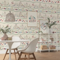 Peter Plys og hans venner nyder foråret i en blomstereng i dette varme og farverige fototapet. Motivet bringer både nostalgi og livsglæde ind i hjemmet og skaber en rolig stemning i børneværelset – fuld af farver, blomster og venskab.