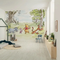Selv på regnvejrsdage bringer dette tapet hygge og varme ind i hjemmet. Peter Plys og vennerne minder os om, at det indendørs kan være lige så rart som udendørs – et hjertevarmt motiv, der skaber tryghed og glæde i børneværelset.