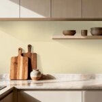 Glade farver som Fresh Pasta skaber en opløftende indretning, og hvis du kombinerer den med grønne og lavendelfarvede nuancer får du både en energisk og legende stemning i rummet.
