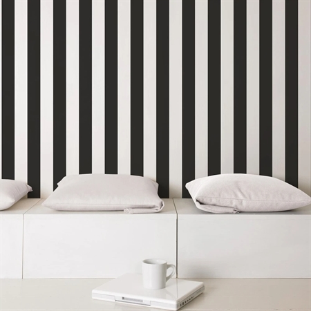 Et stilrent tapet med brede, sorte og hvide striber i klar kontrast. Awning Stripe Black/White tilfører rummet en grafisk skarphed og tidløs elegance – perfekt til dig, der ønsker et markant, men balanceret udtryk i både moderne og klassiske omgivelser.