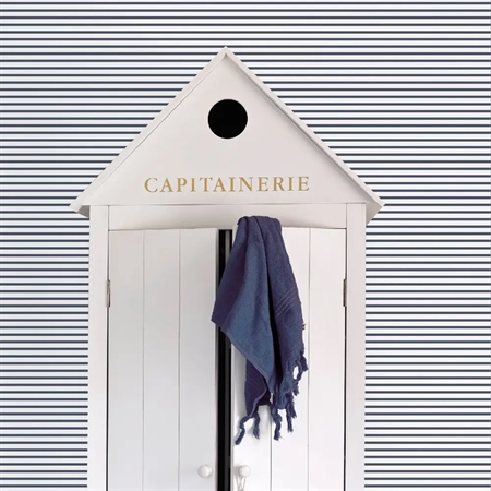 Breton Stripe Blue kombinerer klassisk stribedesign med moderne minimalisme. De fine blå og hvide striber skaber et rent og stilfuldt udtryk, der tilfører rummet ro og struktur.