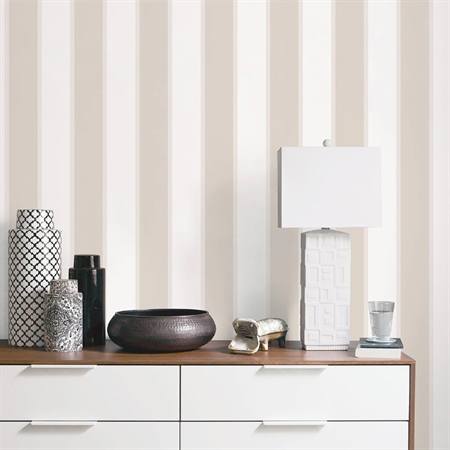Et blødt og elegant tapet med striber i varierende bredder og varme beige nuancer. Formal Stripe Beige skaber en rolig og harmonisk baggrund med et moderne twist – ideelt til dig, der ønsker et tidløst og afbalanceret udtryk i hjemmet.