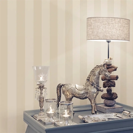 Solid Stripe – Sand er en del af den populære Smart Stripes 3 kollektion, hvor klassisk design møder moderne enkelhed. Tapetet har brede, ensartede striber i en varm sandfarve, der skaber et roligt og afbalanceret udtryk.
