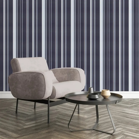 Casual Stripe Blue kombinerer klassiske striber med en moderne marineblå farve, der tilfører rummet dybde og karakter. Tapetet er en del af den stilrene Smart Stripes 3 kollektion og egner sig perfekt til både minimalistiske og mere traditionelle hjem.