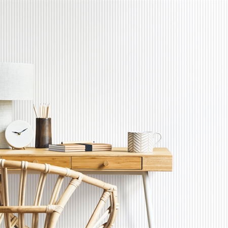Shirt Stripe – Grey er inspireret af klassisk skjortestof og bringer en tidløs elegance til dine vægge. De fine, lysegrå striber skaber et stilrent og diskret udtryk, der passer perfekt til både moderne og traditionelle hjem.