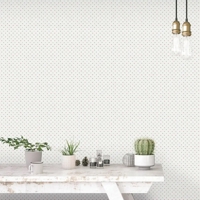 Et let og elegant tapet med små, fine blomster fordelt jævnt over en hvid bund. Det enkle mønster skaber en rolig og harmonisk stemning – ideelt til både soveværelse, entré og stue.