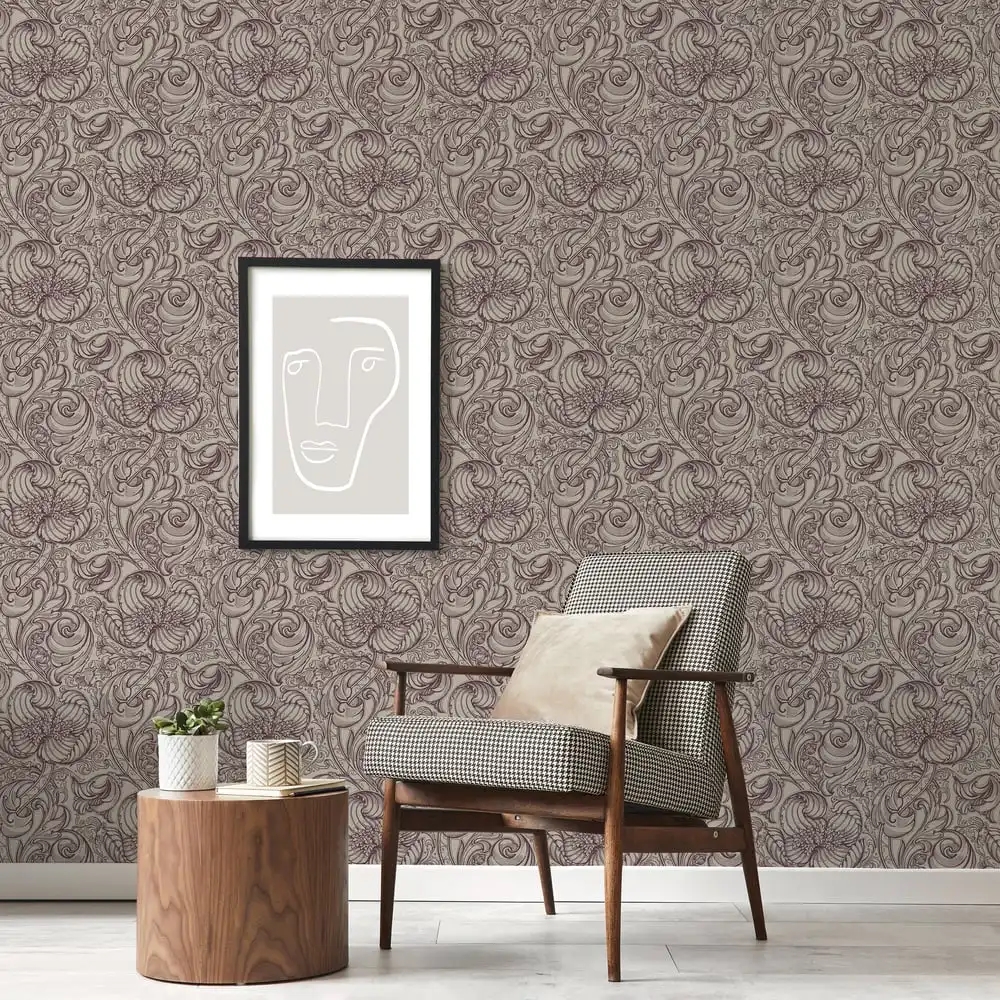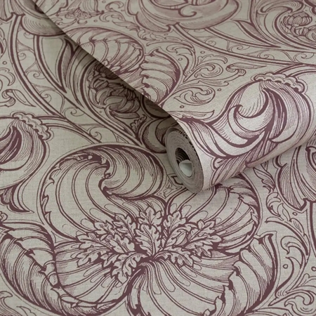 Et dramatisk og raffineret botanisk tapet, hvor kontrasten mellem lyse og mørke røde nuancer giver motivet dybde og intensitet. De fine, detaljerede linjer i blomsterne skaber et næsten håndtegnet udtryk, som tilfører tapetet karakter og eksklusivitet.