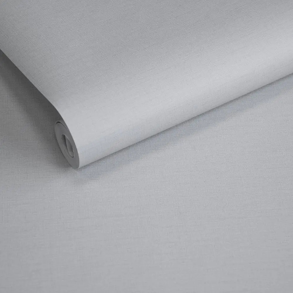 Et neutralt ensfarvet tapet med en ultrafin, vævet struktur, der giver væggen et diskret, men levende udtryk. De grå og sølvfarvede nuancer balancerer elegant mellem varme og kølige toner og skaber et harmonisk helhedsindtryk.