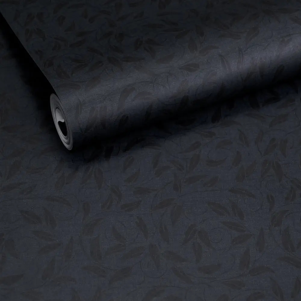 Den mørke farve giver rummet dybde og ro, mens det botaniske mønster tilfører bevægelse og lethed. Et tapet, der egner sig særligt godt til rum, hvor der ønskes en mere markant, men stadig afstemt stemning – som soveværelse, stue eller kontor.