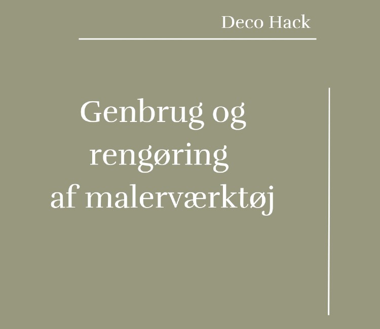Blog Genbrug og rengøring af malerværktøj Dit malerværktøj kan holde meget længere end du tror hvis bare du behandler det rigtigt. I dette Deco Hack får du enkle tips til både opbevaring og rengøring, så dine pensler og ruller forbliver i god stand. Det sparer dig penge og sikrer et bedre resultat hver gang. Cathrine Bakdal Hansen - Tips & Tricks ekspert Senest opdateret02 april, 2026 Dit malerværktøj kan holde i længere tid hvis du behandler det rigtigt. Få vores tips herunder. Hold dine pensler og ruller friske Pak ind i husholdningsfilm eller plasticpose Forsegl ved skaftet med malertape Holder værktøjet fugtigt og klar til brug Rengøring efter maling Vandbaseret maling Skrab overskydende maling af Læg i blød i varmt vand (+ lidt opvaskemiddel) Slyng vand ud af rullen udenfor Oliebaseret maling Rens med penselrens/terpentin Hæld aldrig væsken i vasken Lad malingen bundfælde før bortskaffelse Produkter til rengøring af malerværktøj: Små tricks og længere levetid Smarte tricks Brug afdækningstape til at rette strittende penselhår Tør værktøjet helt før opbevaring Lev længere – mal pænere Brug værktøj i god kvalitet Kan genbruges igen og igen med korrekt rens Vil du have flere malertips, så skriv dig op til vores nyhedsbrev Relaterede artikler:
