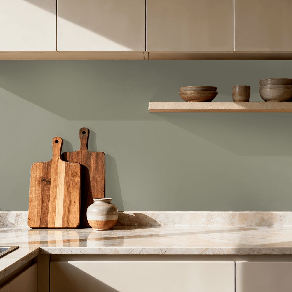 Green Leaf 8469 er en gylden og dæmpet grøn nuance. Den perfekte grønne farve for dig, som ønsker en naturlig grøn farve, og som samtidig vil fremhæve den nordiske stemning i rummet. Green Leaf skaber en fornemmelse af tidløshed og ro, og gør hjemmet til et sted du henter ny energi.