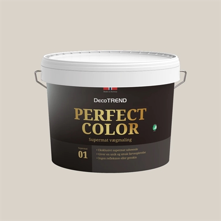 Vores smukkeste maling nogensinde er supermat, med et eksklusivt udseende. Perfect Colors bløde, supermatte finish giver en unik farveoplevelse. Den supermatte overflade, helt uden reflektion, fremhæver farverne på en helt speciel måde – og farven vil opleves både blødere og mere dæmpet.