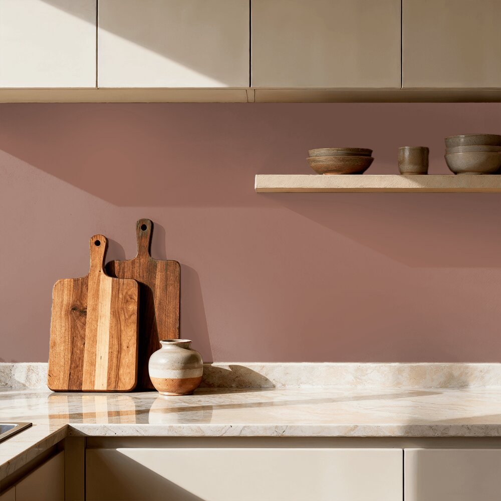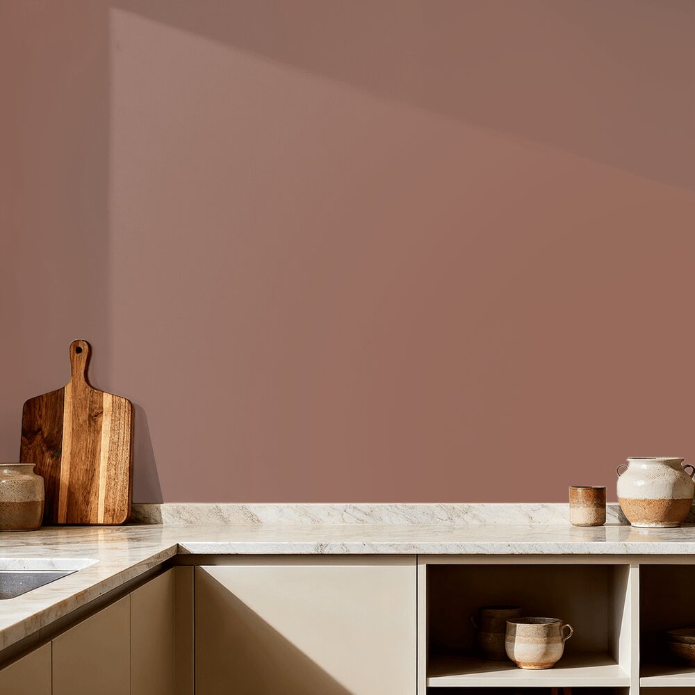 Grounded Red 20144 fra Jotun er en varm og jordnær rød farve, der har et brændt udtryk. Farven er rå og ærlig og forvandler rummet til en varm og beskyttende hule. Et godt farvevalg til dig, som ønsker en tryg og hyggelig stemning. Denne smukke nuance tones i vores DecoTREND Perfect Color, som giver en eksklusiv mat overflade, der forstærker følelsen af tryghed og hyggelig stemning i farven.