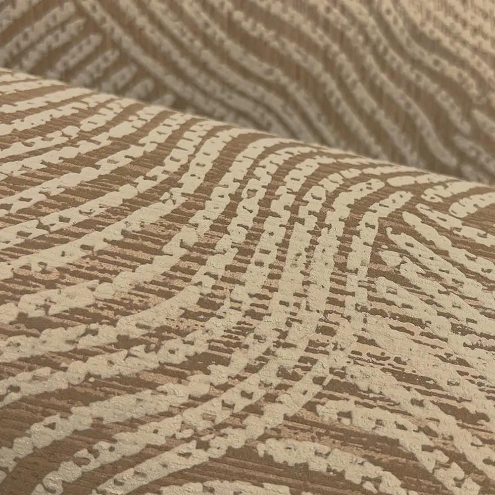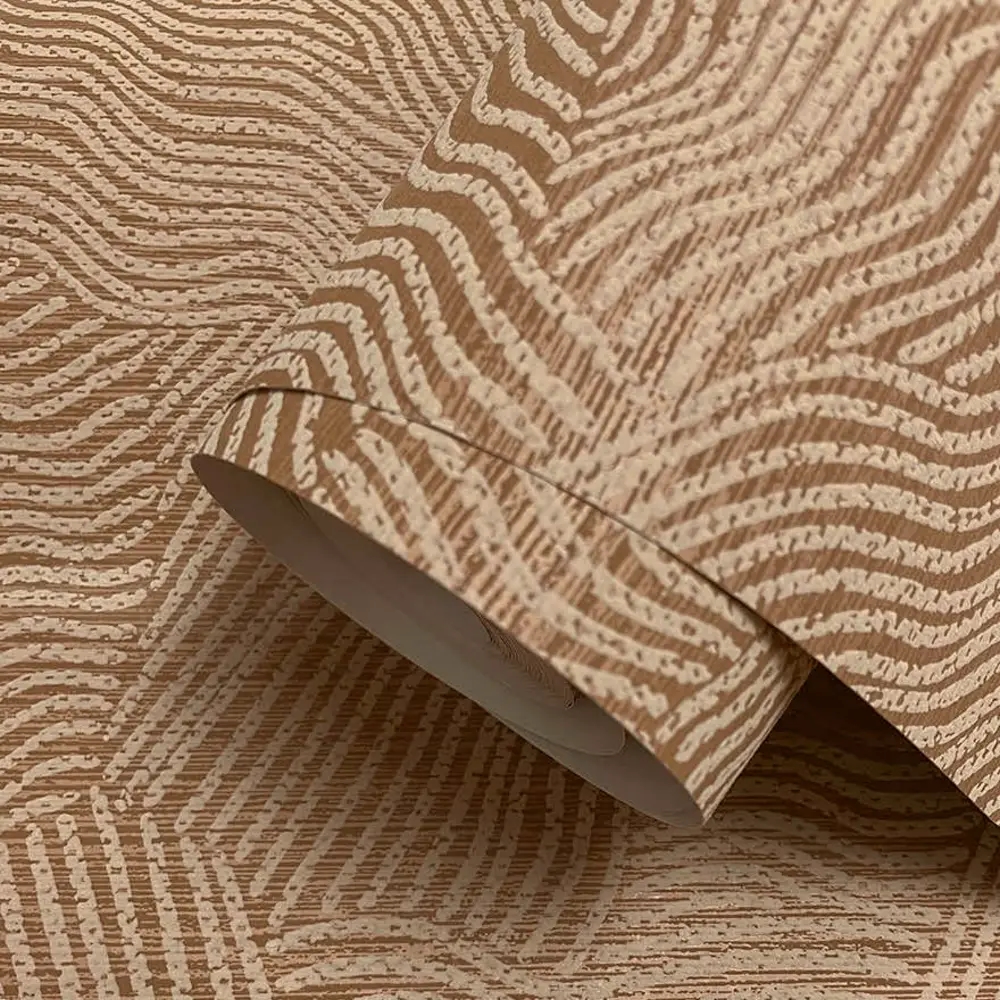 Et roligt og stemningsfuldt tapet inspireret af ørkenens bløde, bølgende former. Mønstret gengiver sandets naturlige bevægelser skabt af vindens retning og giver væggen et levende, men afdæmpet udtryk. De varme terracottanuancer tilfører rummet dybde og varme, mens det lineære relief skaber en diskret struktur og en elegant helhed.
