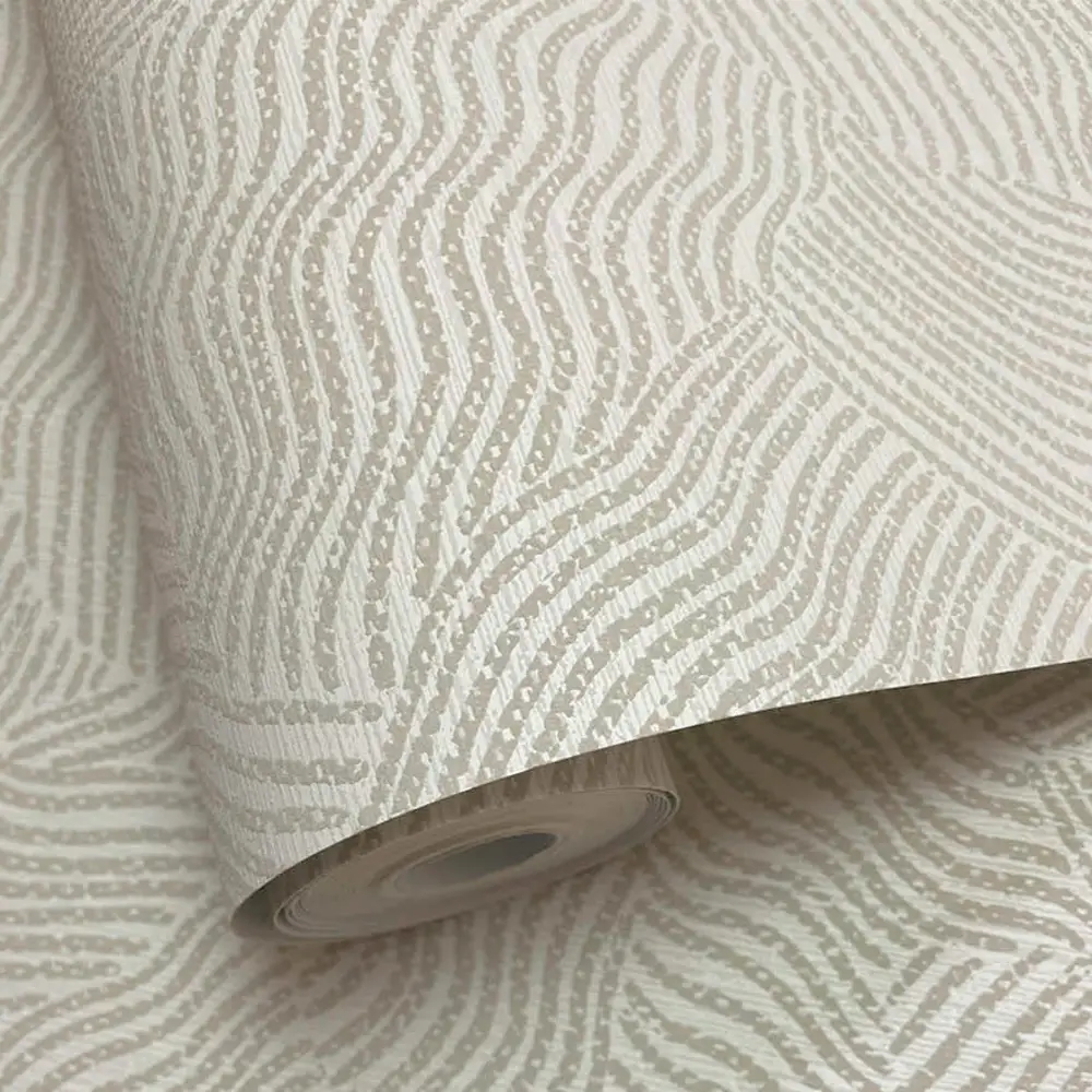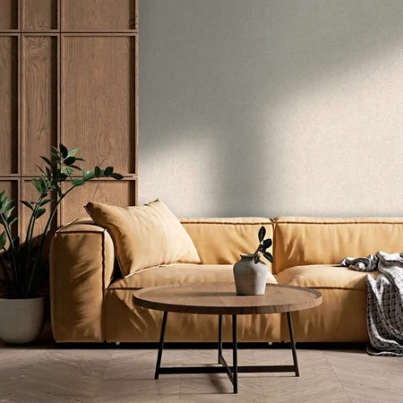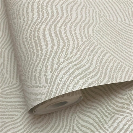 Et roligt og elegant tapet inspireret af ørkenens bløde, bølgende overflader. Mønstret gengiver sandets naturlige bevægelser skabt af vindens retning og giver væggen et levende, men afdæmpet udtryk. De lyse hvide nuancer tilfører rummet lethed og ro, mens det diskrete, lineære relief skaber dybde og en harmonisk helhed.