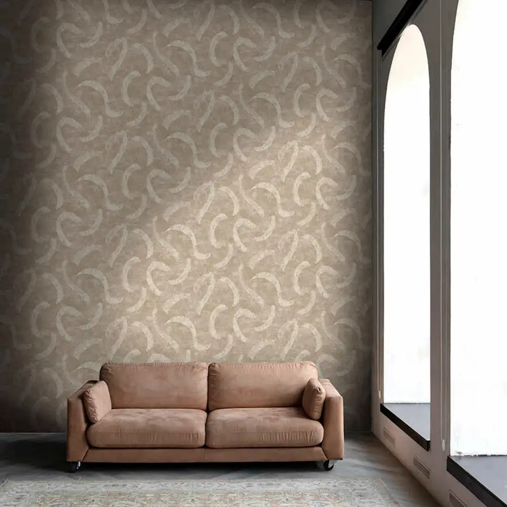 Et kunstnerisk og roligt tapet med flydende penselstrøg og en let struktureret overflade. Designet er inspireret af sirocco-vindens bevægelser hen over Saharas sandklitter og giver væggen et levende, men afdæmpet udtryk. De varme beige nuancer skaber balance og ro, mens strukturen tilfører dybde og en elegant helhed.