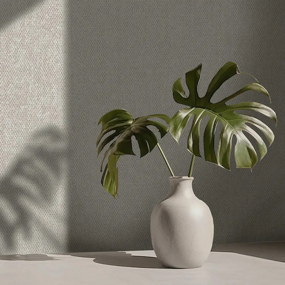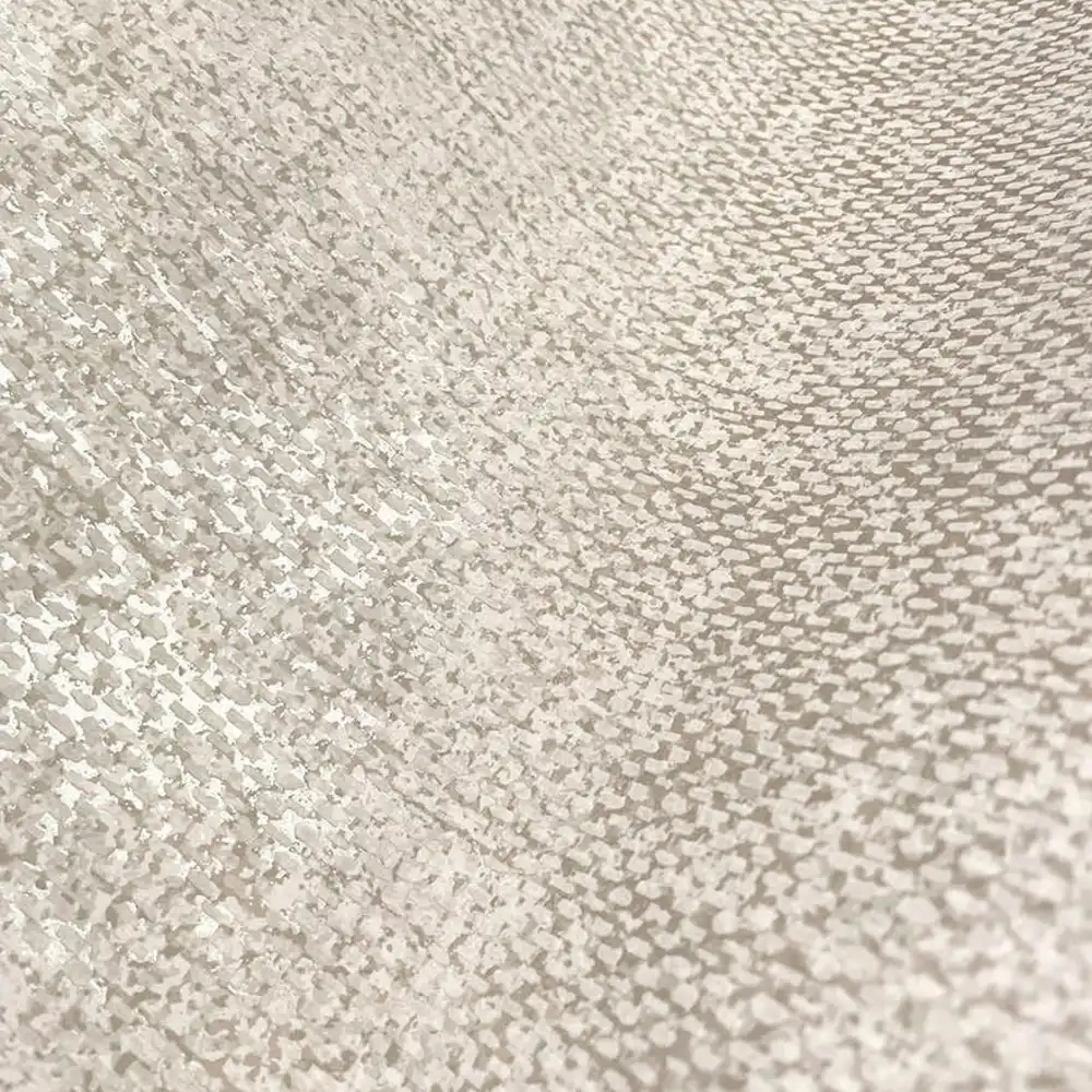 Et elegant og afdæmpet tapet, der gengiver udtrykket af groft, vævet tekstil. Den lette relief skaber dybde i overfladen, mens diskrete metalliske detaljer ligger under det akrylbaserede vævemønster og tilfører et smukt spil i lyset. De hvide nuancer giver tapetet et roligt og tidløst udtryk, der passer smukt ind i både moderne og klassiske rum.