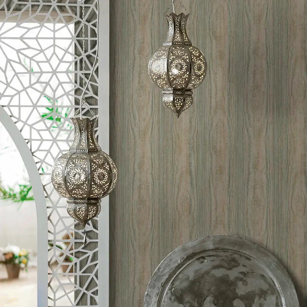 Et stemningsfuldt tapet inspireret af overgangen mellem Saharas frodige syd og det tørrere nord. Designet kombinerer bløde, bølgende linjer og akvarel-lignende markeringer under et let ophøjet moiré-mønster, der giver associationer til rislende vand og spejlinger. De varme oliven- og rustnuancer skaber dybde og bevægelse og giver rummet et roligt, men karakterfuldt udtryk.