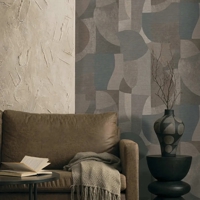 Et abstrakt og stemningsfuldt tapet inspireret af Saharas høje sandklitter og ørkenens skiftende lys fra dag til nat. De bløde, geometriske former er opbygget i harmoniske farvetoner, der giver dybde og ro til udtrykket. En lagdelt akrylstruktur tilfører overfladen liv og bevægelse og skaber associationer til sandstormenes spor i landskabet. De dybe navy nuancer giver tapetet et elegant og markant præg.