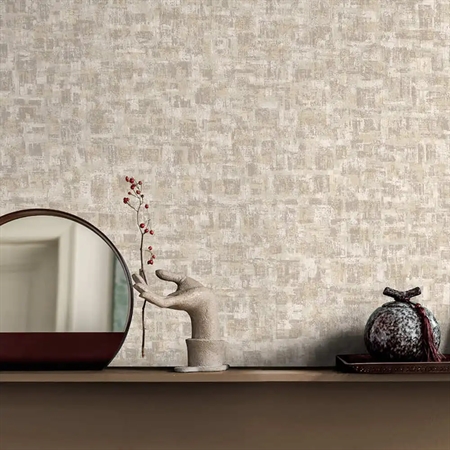 Valora Dove kombinerer et look af vævet tekstil med moderne elegance. Tapetet er opbygget af overlappende, børstede blokke, der skaber et visuelt spil og en følelse af dybde – næsten som bløde stofpaneler. De let metalliske detaljer tilfører varme og liv til det ellers nedtonede, stoflige udtryk. Et oplagt valg til dig, der ønsker tekstur og karakter på væggen – uden at gå på kompromis med ro og balance.