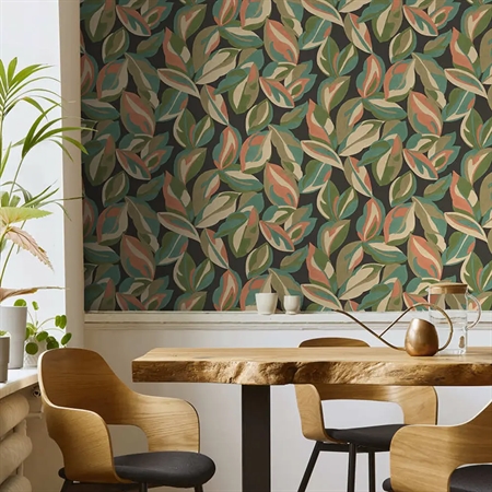 Nicolai Leaf Charcoal fra The Lost Garden-kollektionen af Holden Decor forener naturens vildskab med moderne dramatik. De store blade og mørke nuancer skaber en dyb, næsten eventyrlig stemning i rummet – som at træde ind i en glemt, frodig have. Et karakterfuldt valg til dig, der ønsker et tapet med både kant og elegance.