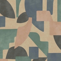 Frisk og afdæmpet i ét. Taupe Aqua kombinerer bløde, organiske former med et geometrisk udtryk – i en farvepalette af kølig aqua og varm taupe.
