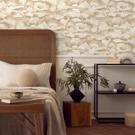 Et lyst og luftigt tapet med motiv af bløde, svævende skyer. Sora Cream gengiver himlens rolige bevægelser og skaber en afslappet stemning med masser af lethed og lys – ideelt til rum, hvor du ønsker ro og naturlig balance.