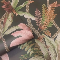 Et frodigt og stemningsfuldt tapet med et palme- og bladmønster, der skaber en rolig og indbydende atmosfære. De gråsorte nuancer giver tapetet dybde og et mere markant udtryk, mens de organiske former bevarer en afbalanceret og harmonisk helhed. Et dekorativt tapet, der tilfører rummet karakter og fungerer som et elegant statement på væggen.