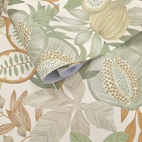 Nagano er et frodigt og levende tapet med et rigt samspil af frugter og bladværk. Granatæbler, figner og æbler folder sig ud i et detaljeret mønster, der giver væggen et friskt og farverigt udtryk. Designet er inspireret af den mangfoldige asiatiske natur og tilfører rummet energi, varme og karakter – uden at virke overvældende.