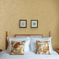 Ajanta er et eksklusivt tapet med en metallisk overflade, der reflekterer lyset på elegant vis og giver væggen et levende, men roligt udtryk. Den fine glans spiller smukt sammen med den lette tekstur og matte bund, hvilket skaber en raffineret overflade med et diskret, antikt præg. Et design, der tilfører rummet varme, dybde og en sofistikeret stemning.