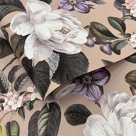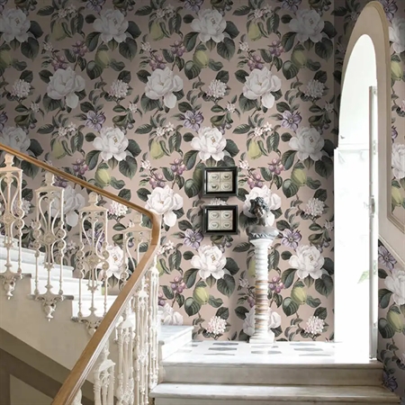 Elegant pæremotiv med blomster fra tapetkollektionen Tales of the Manor af Holden Decor – et harmonisk design med naturens rolige skønhed i centrum.