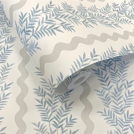 Moderne stribet tapet fra Tales of the Manor-kollektionen fra Holden Decor – med diskrete blade og en elegant, bølgende struktur, der skaber et stilrent og organisk udtryk.