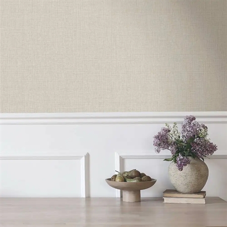 Et elegant tapet med vævet tekstur, inspireret af naturligt linned. Det diskrete mønster og den bløde struktur giver væggen et varmt og sofistikeret udtryk. En del af Tales of the Manor-kollektionen fra Holden Decor.