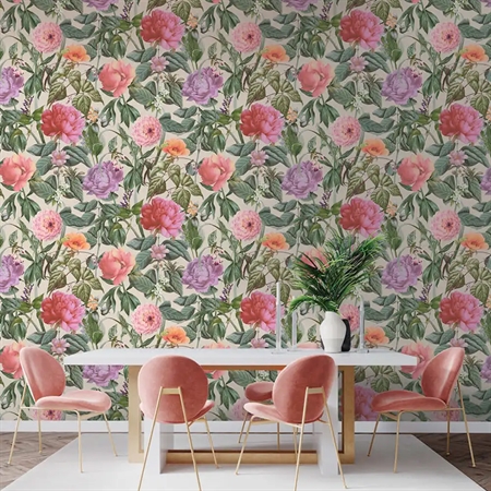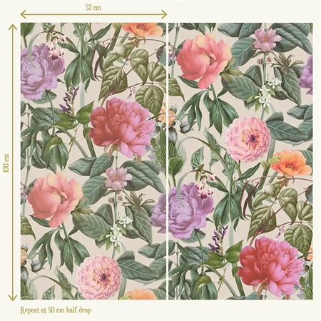 Et blomstret tapet med et romantisk og roligt udtryk. Botanicus Cream gengiver en tæt blomsterhave i bløde, lyse nuancer – som et stille øjeblik midt i naturens frodighed. Et elegant valg til rum, der skal emme af varme og lethed.