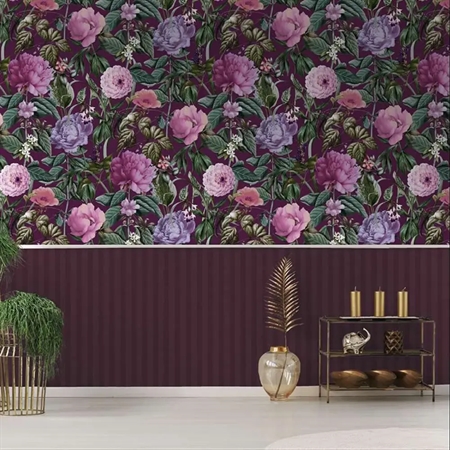 Et sanseligt og stemningsfuldt tapet med tæt blomsterflor og dybe bærtoner. Botanicus Berry bringer naturens poesi ind i hjemmet og skaber en varm og indbydende atmosfære med klassisk elegance og levende farvespil.